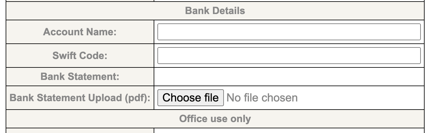 These are the detais that WRBLO will use if it funds your project. The account name should match the name of the organisation handling finances, and the swift code should be the full account code and number. When you have uploaded a recent bank statement, a link to it will appear in the Bank Statement field. The bank statement details will only be available to WRBLO staff and yourself. The bank statement should provide evidence that the account details are correct.