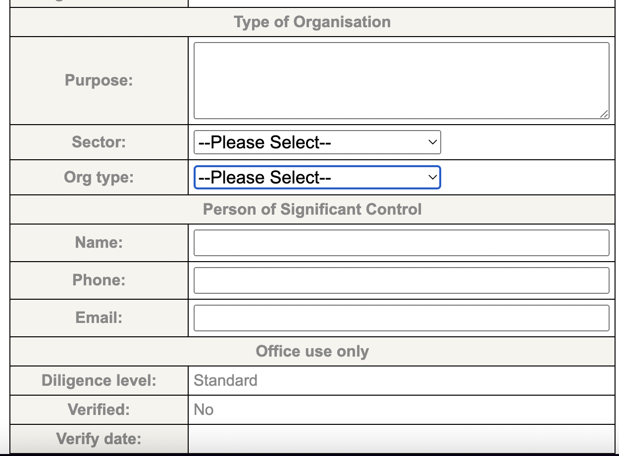 When you click Submit, Apply will check whether the organisation is already registered with us. If not, then you will need to enter all the new organisation details, as before.